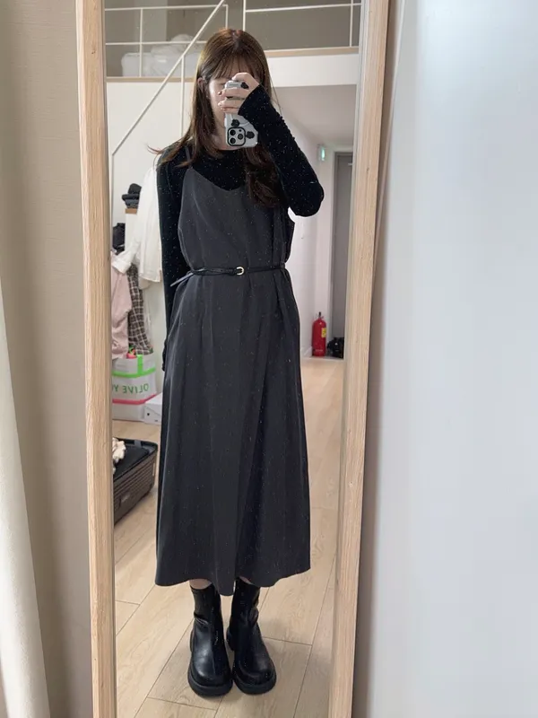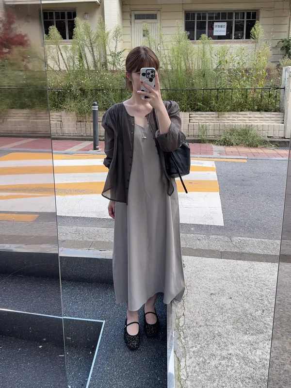 秋季色調細肩V領洋裝