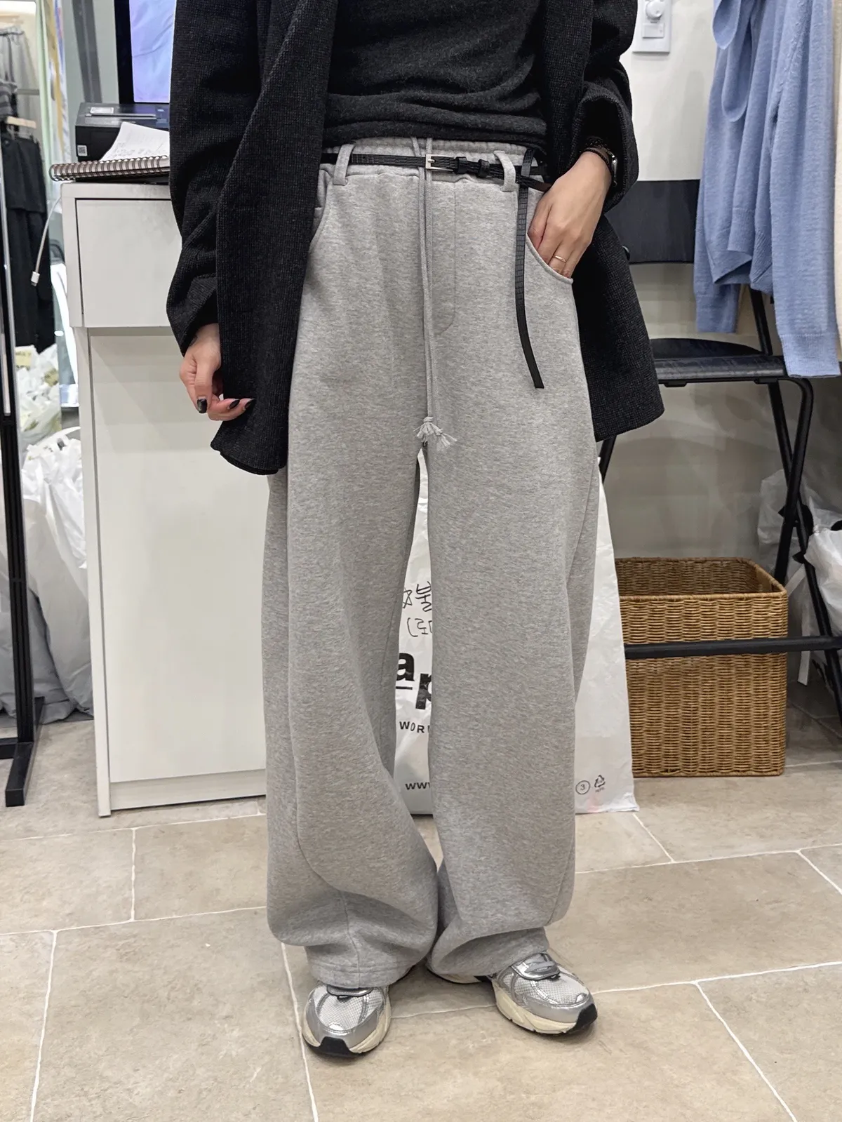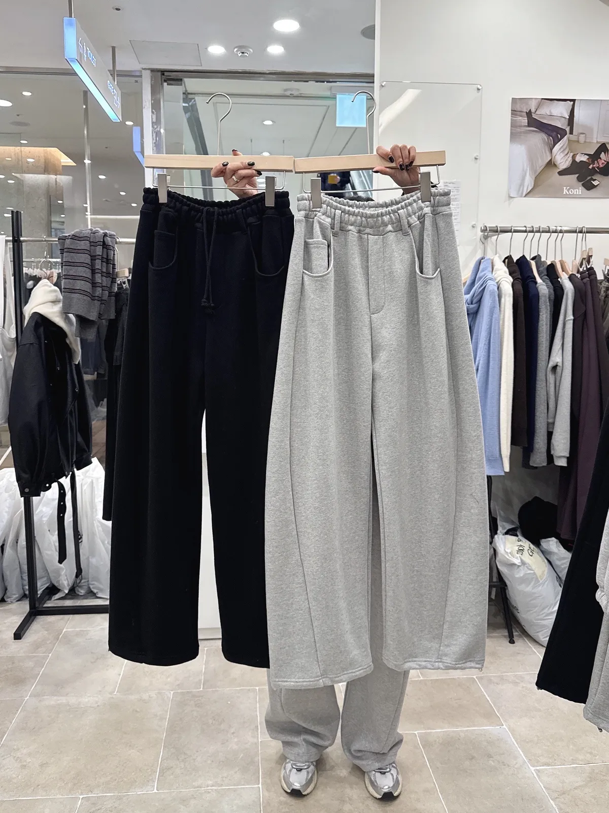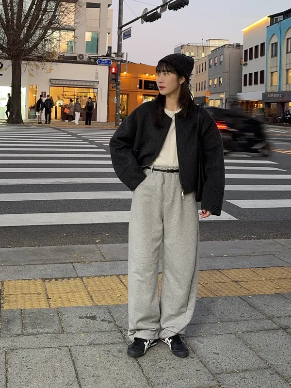個性側拼線縮口棉褲