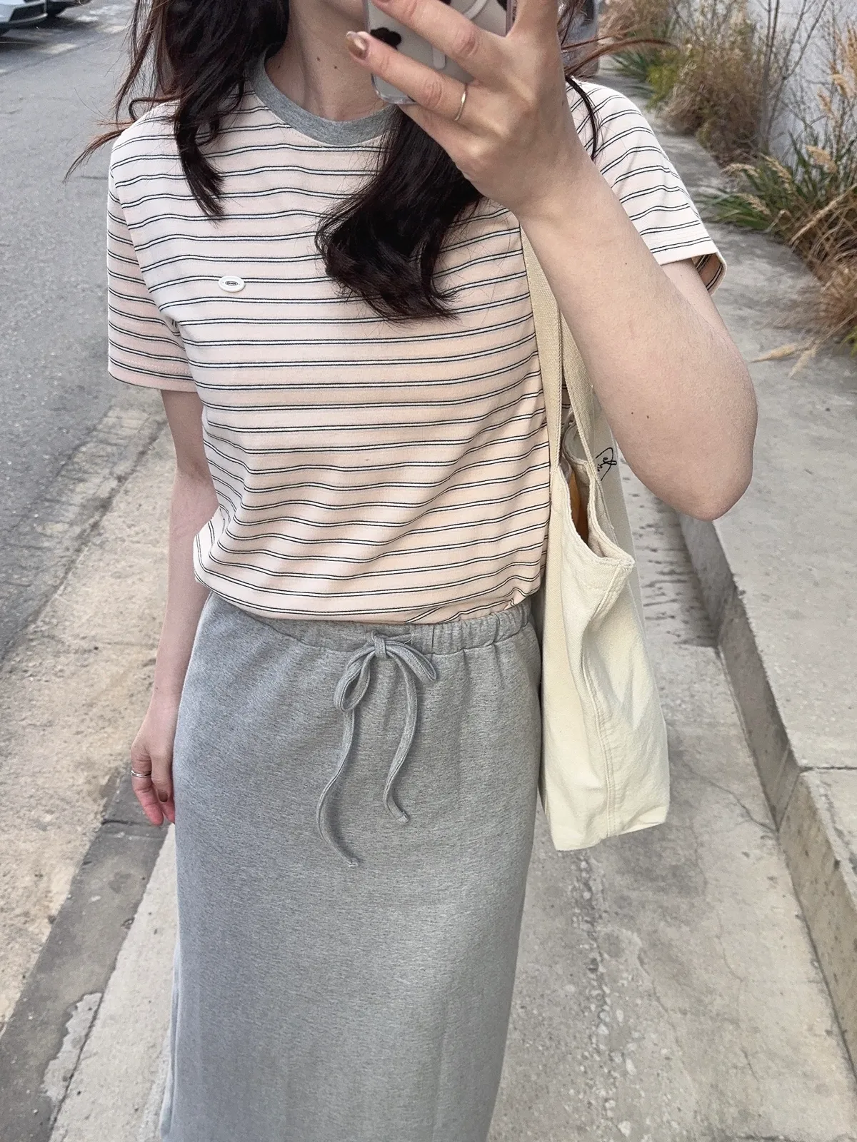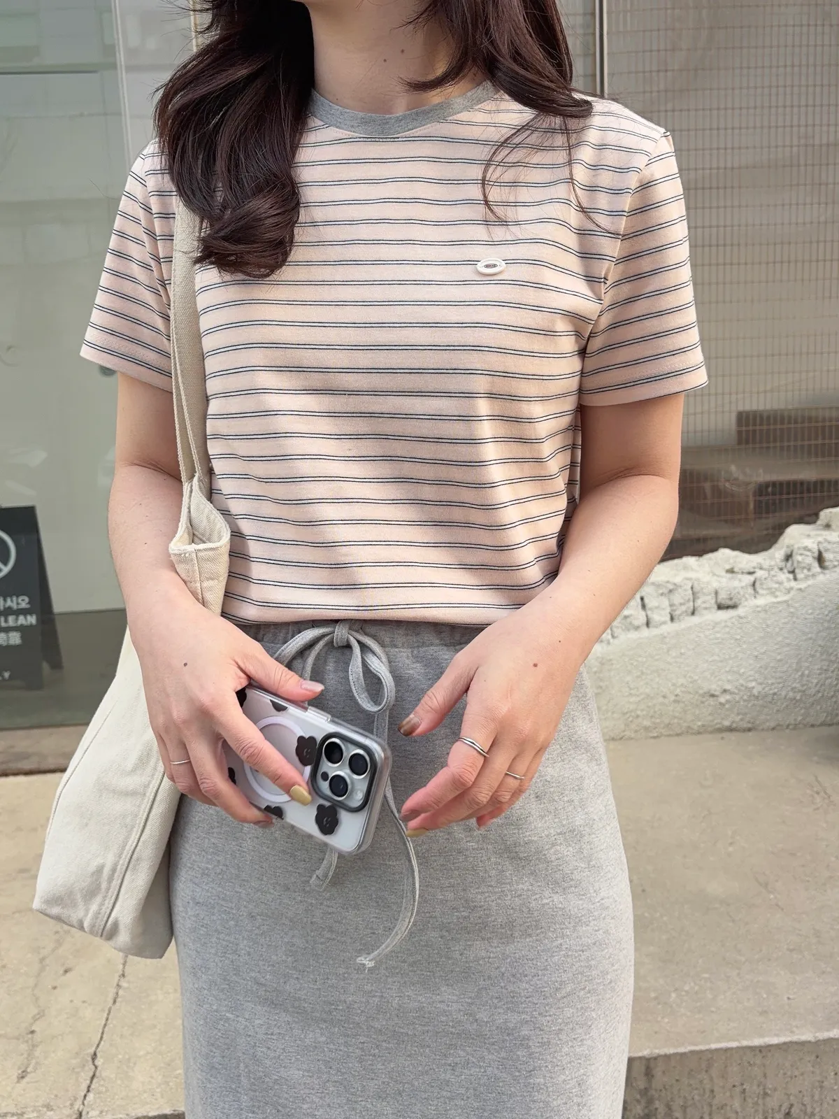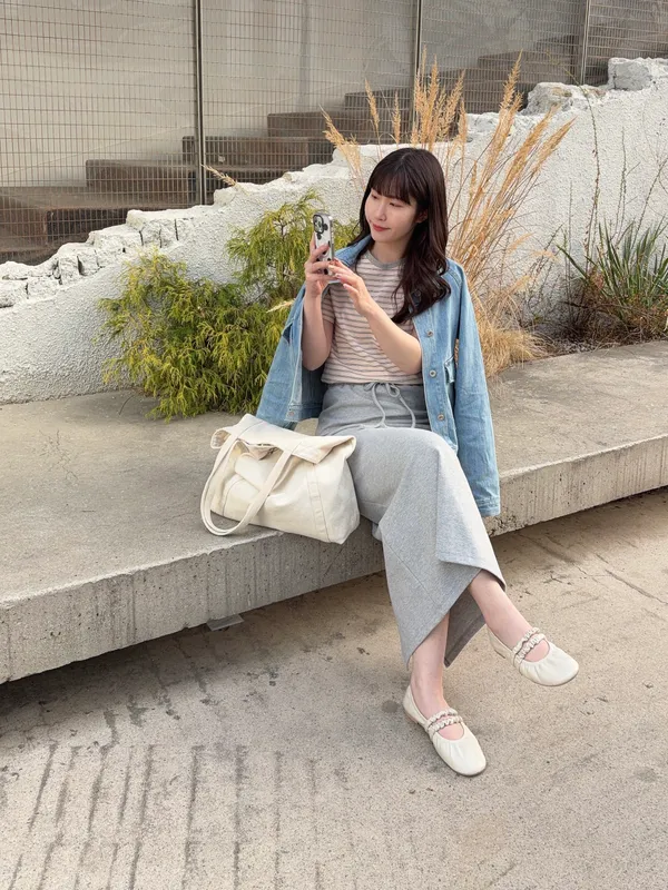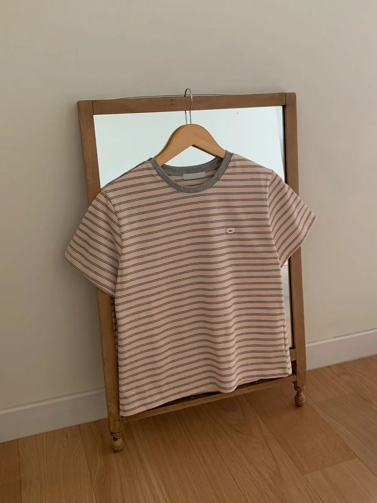 🥈粉杏色柔亮 領口撞淺灰 下身搭配牛仔系列很亮眼