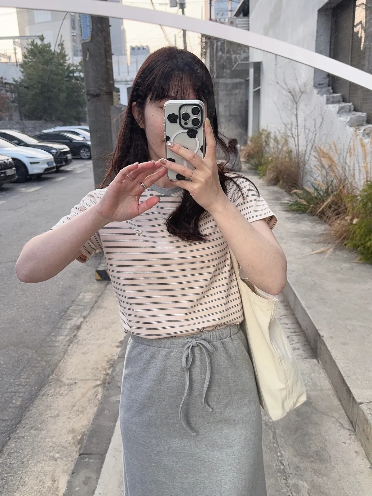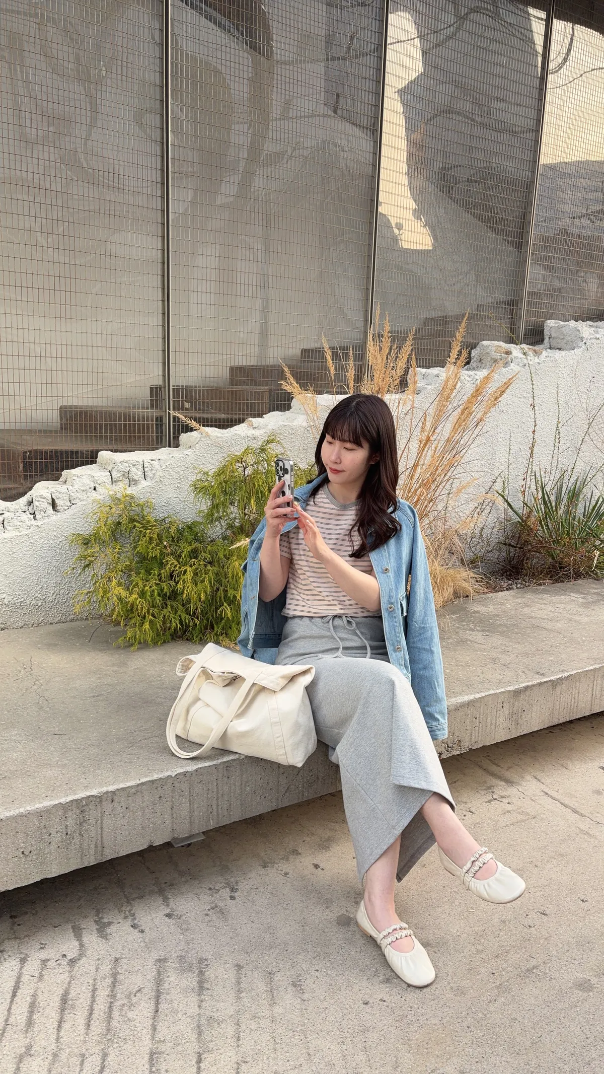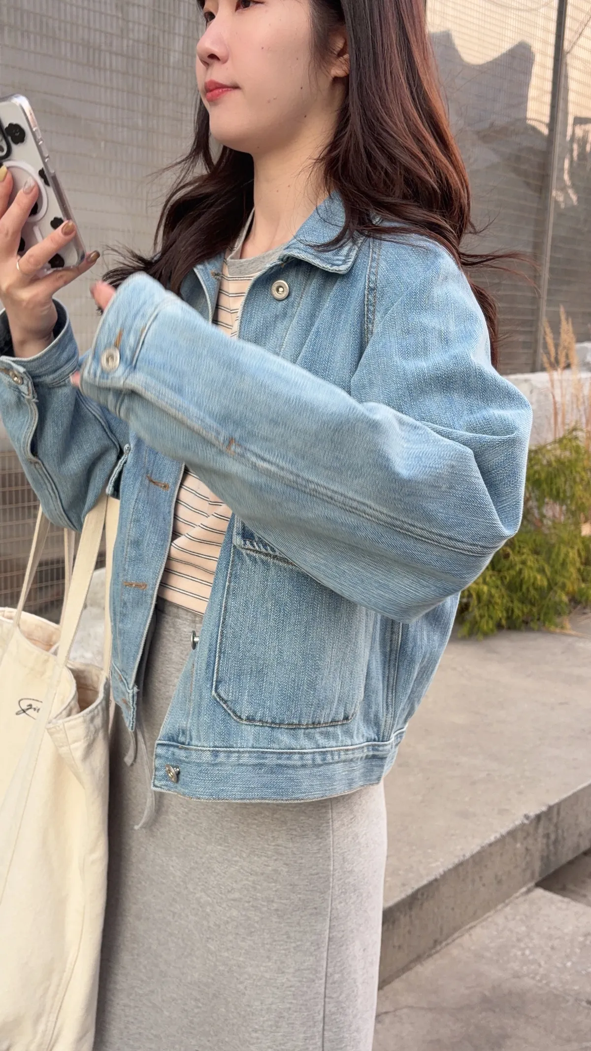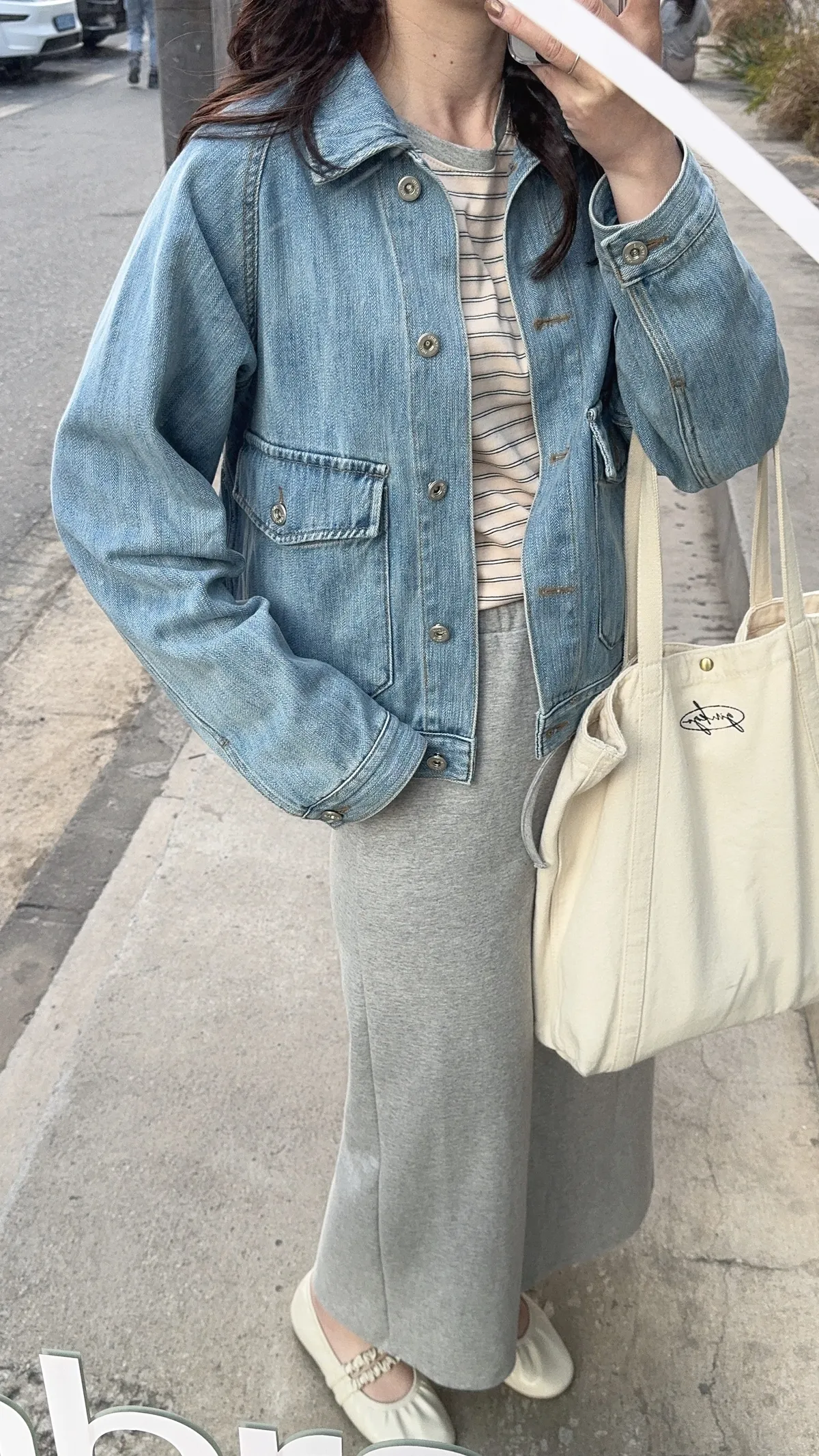 🥈粉杏色柔亮 領口撞淺灰 下身搭配牛仔系列很亮眼