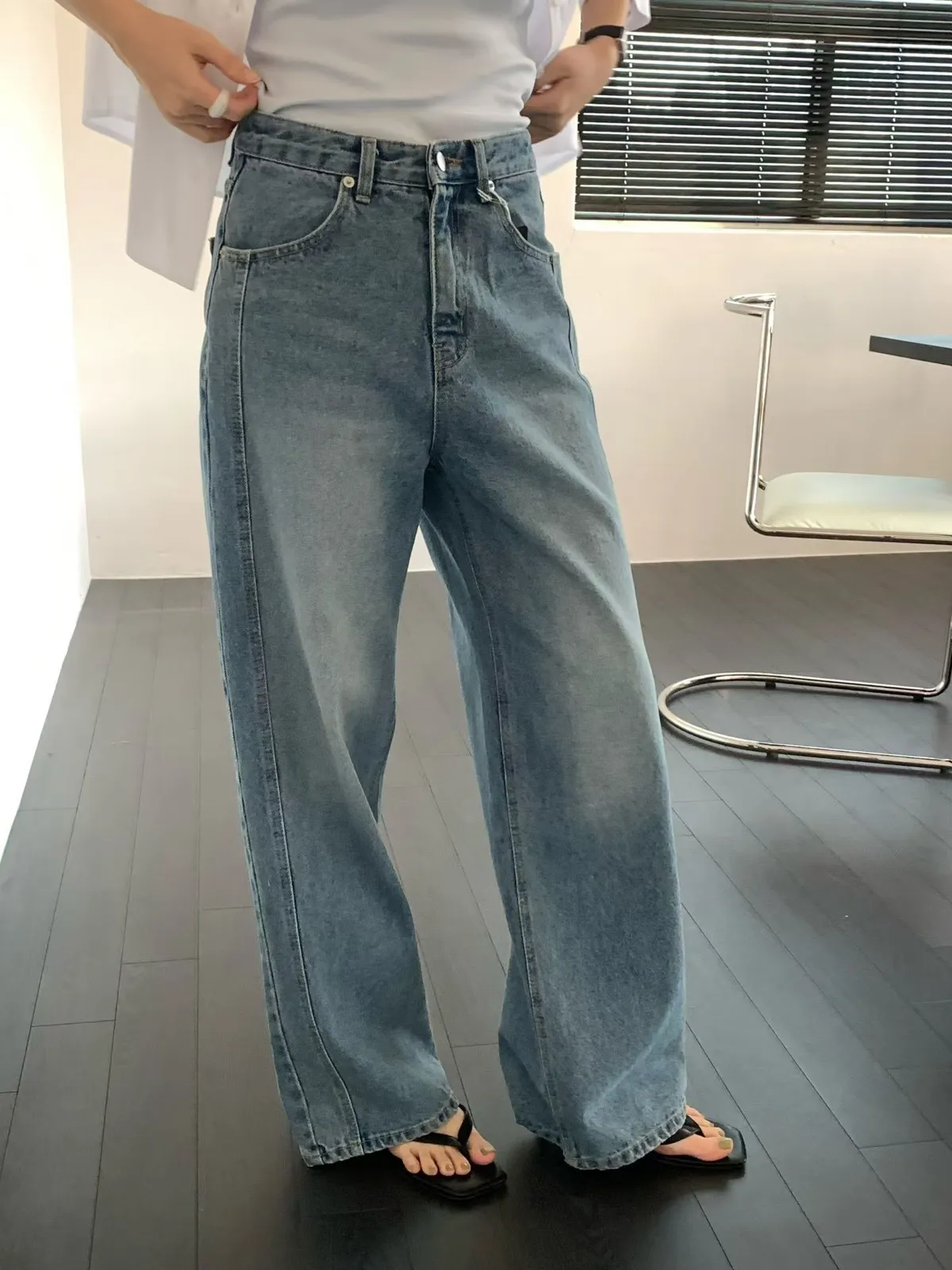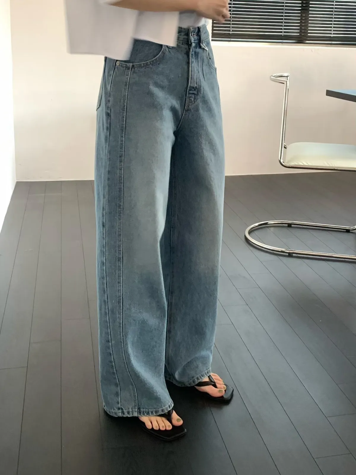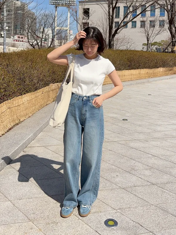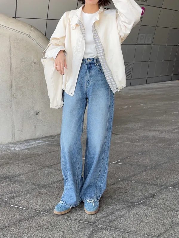 韓國近期真的很流行牛仔褲有側拼線的設計