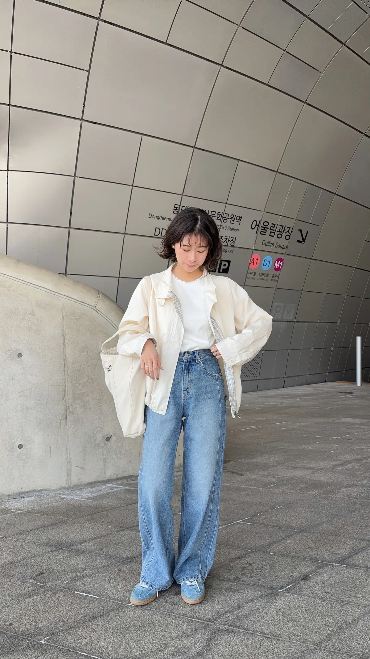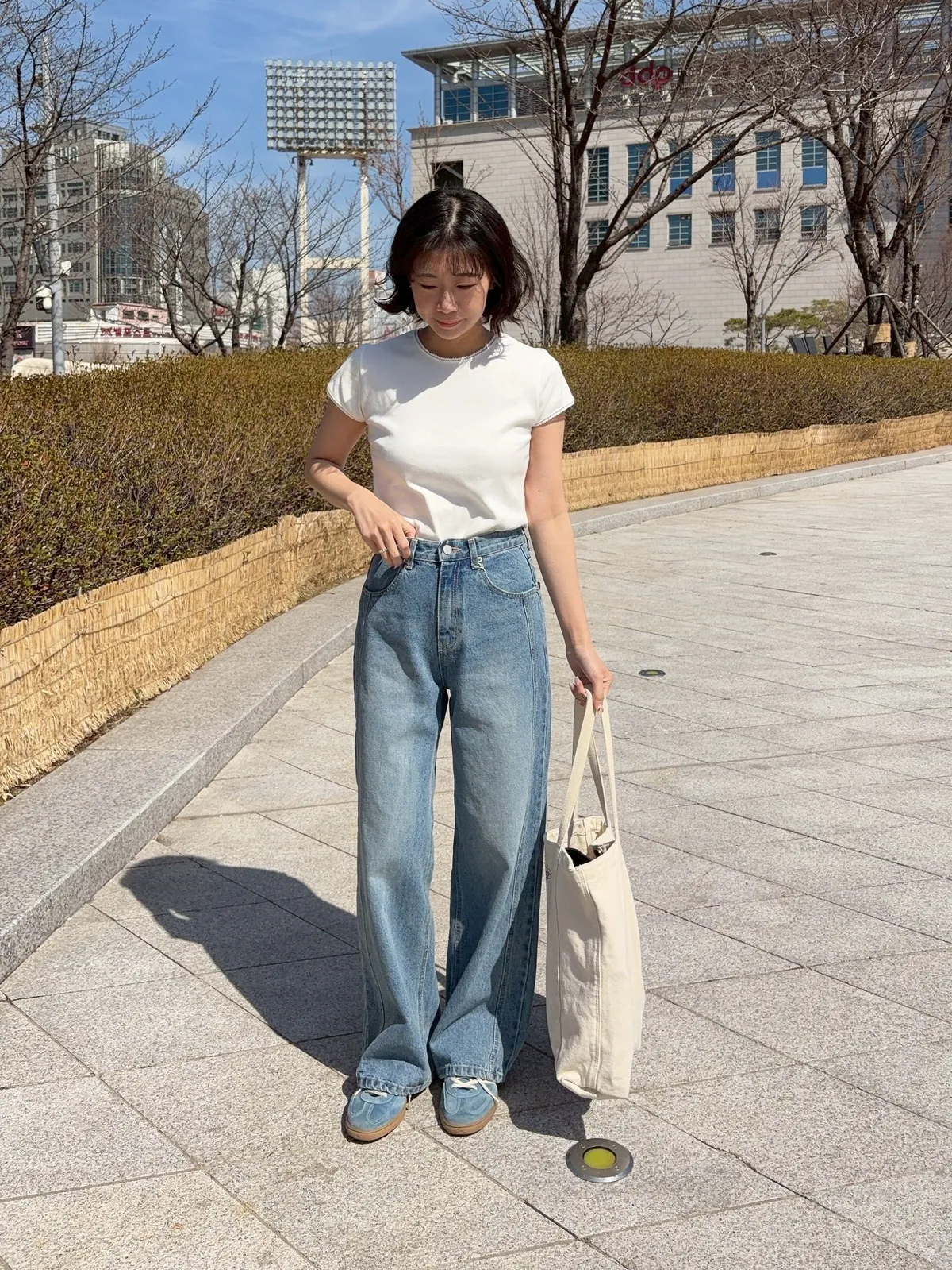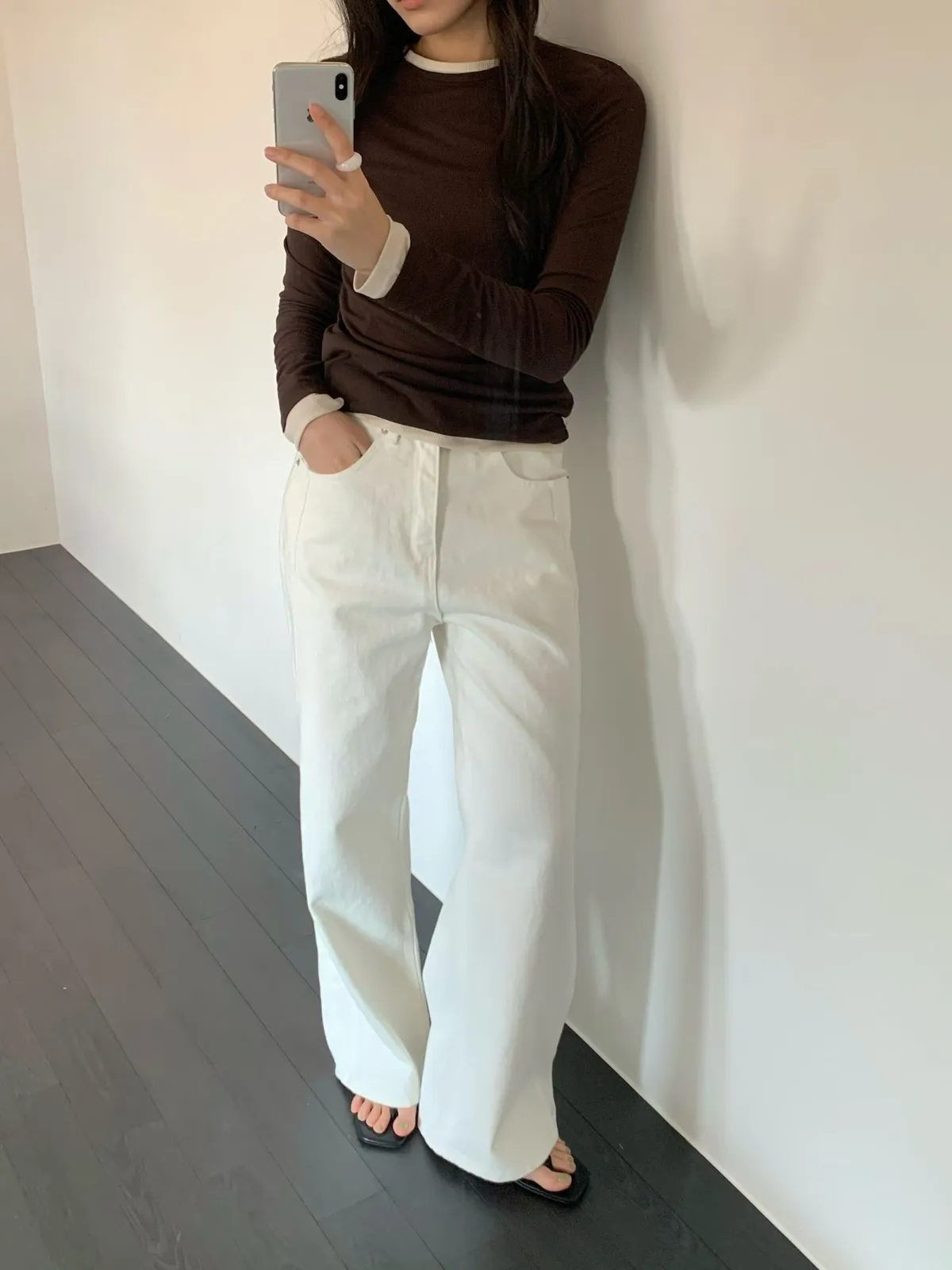 韓國近期真的很流行牛仔褲有側拼線的設計