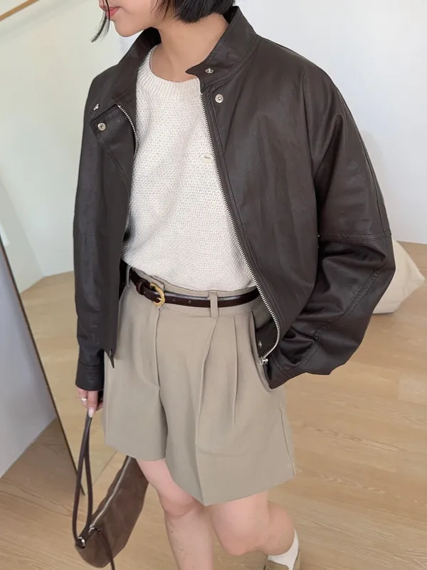 光滑霧面質感 整條為天然牛皮皮革 搭配復古圓金釦